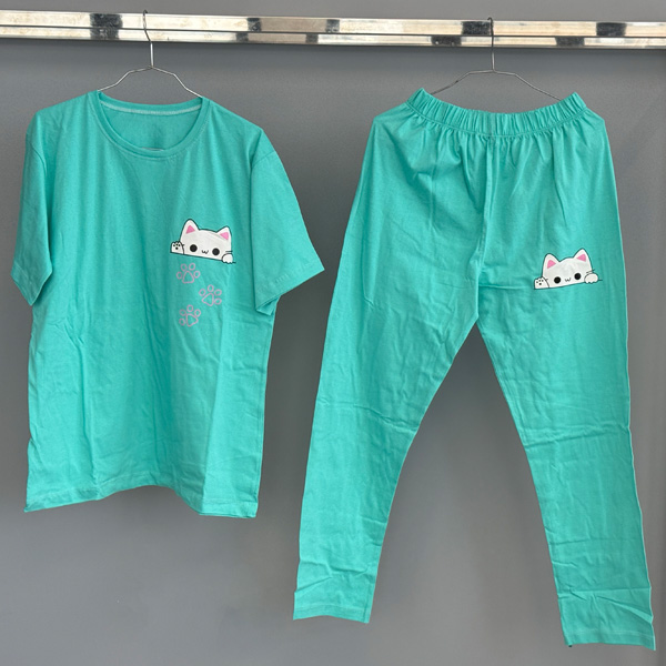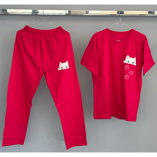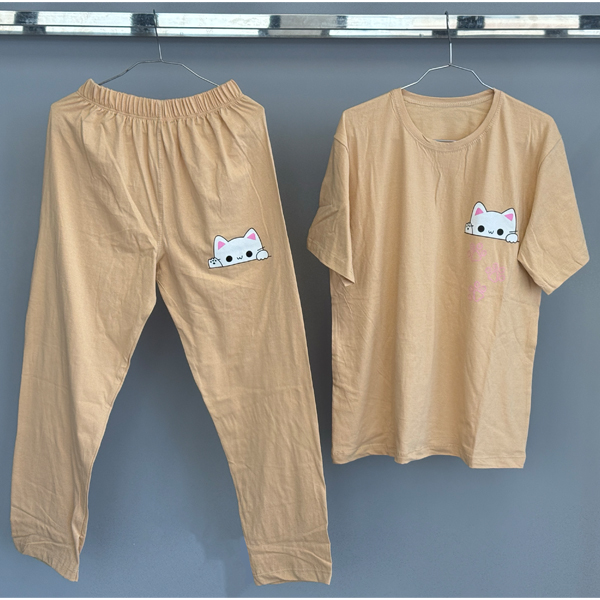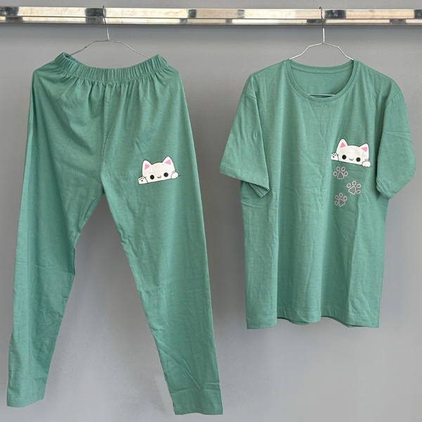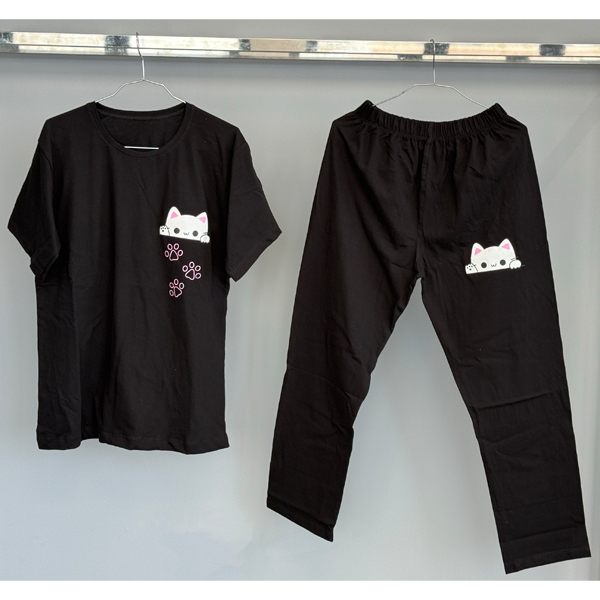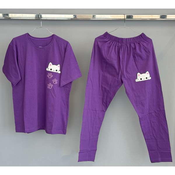 ست تیشرت و شلوار طرح گربه قواره بزرگ